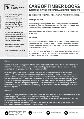 Wood International Agency Ltd has produced a Care of Timber Doors information sheet to help manufacturers and distributers ensure our products behave as intended.