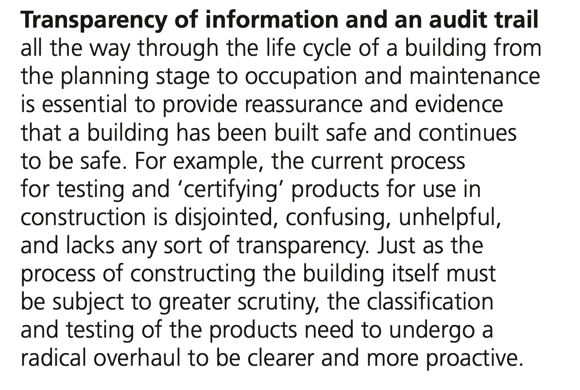 Wood International Agency Limited fully supports transparency for fire safety construction products. An interesting and relevant couple of paragraphs from Building a Safer Future –
