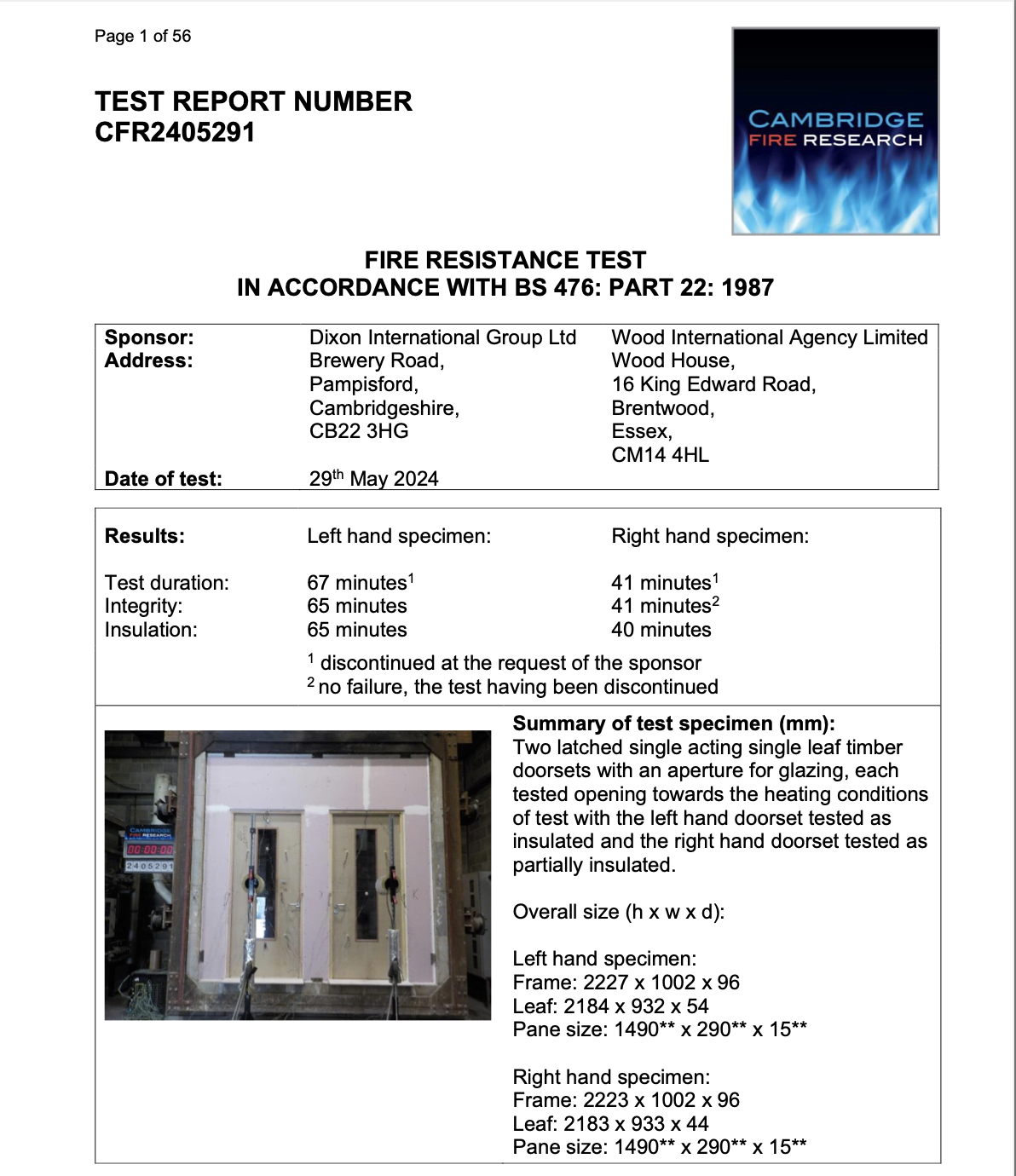 You will find test reports with Wood International Agency Ltd door products with specimens opening both towards and away to the furnace, with certified scope documents in accordance with the principles and standards above. If you want to discuss any aspect of our test evidence, get in touch!